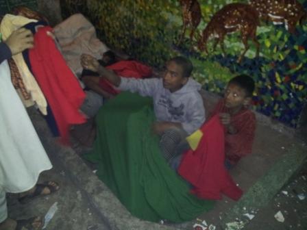 Due to Political Unrest, we were unable to distribute winter cloth as per our plan. Now, for the time being, we tried to perform our Aid activities in a short range in Dhaka & Chittagong. But we hope, we shall finish our Aid activities for cold heated people of Bangladesh rural area as per our Plan Insha Allah. Keep in touch with us. Meanwhile, we distributed 40 Blankets & some winter clothes to the poorest distress people at the roadside and slum-house. Some photos of our activities are attached below.