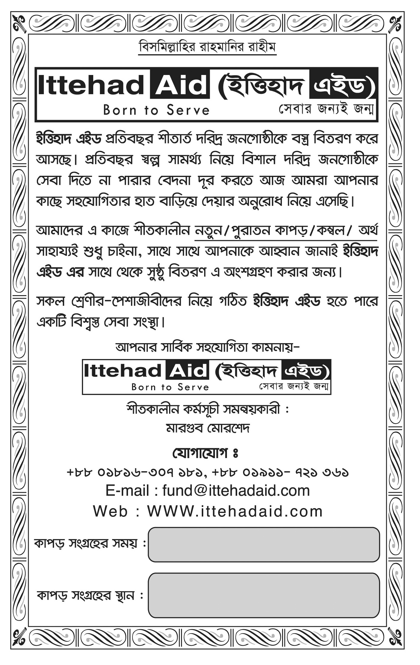 Insha Allah, we will go to Islampur to distribute winter cloth to the poor people. Please pray for us.